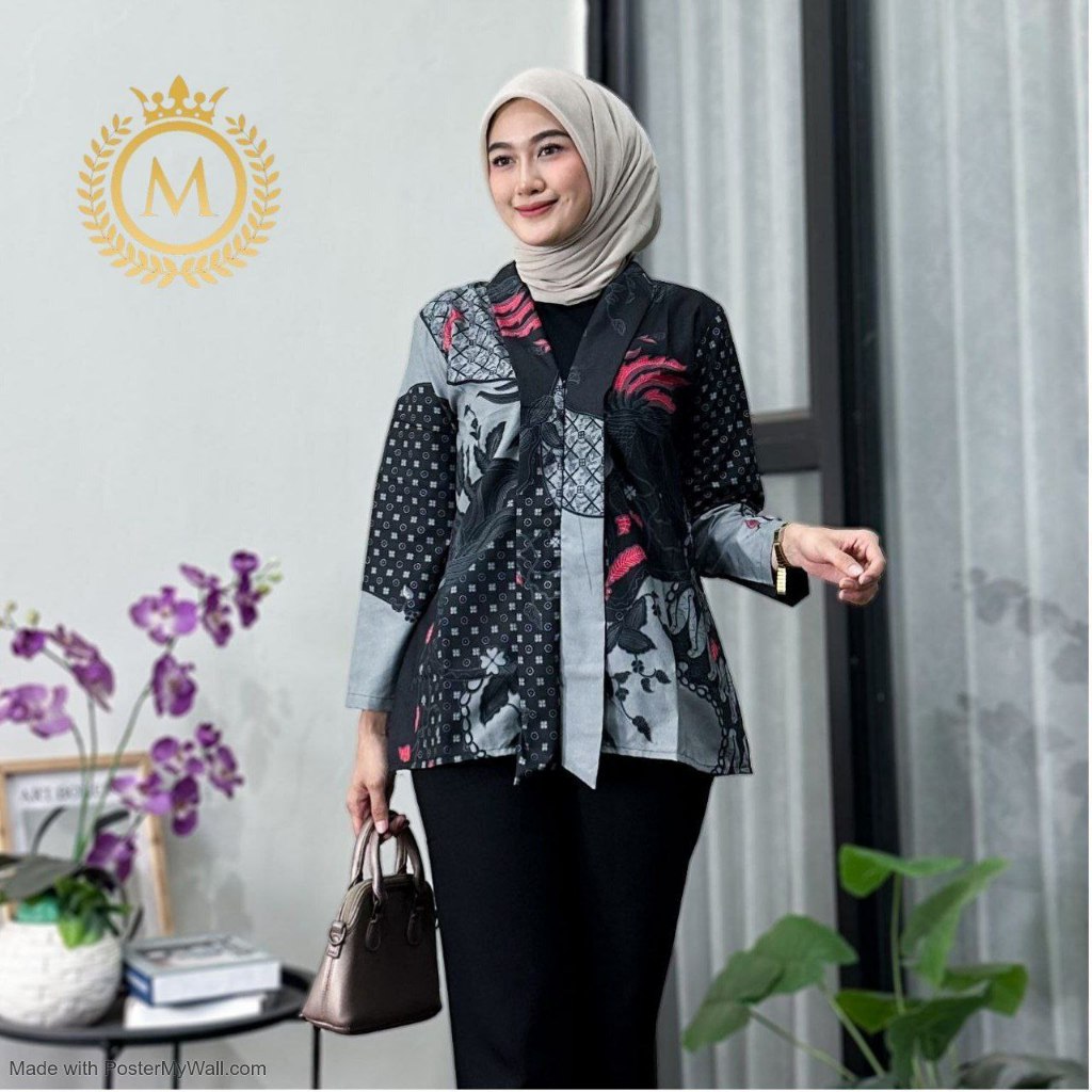 NAVY Atasan Batik Wanita Blouse Baju Batik Wanita Modern Baju Kantor Katun Kekinian Cewek