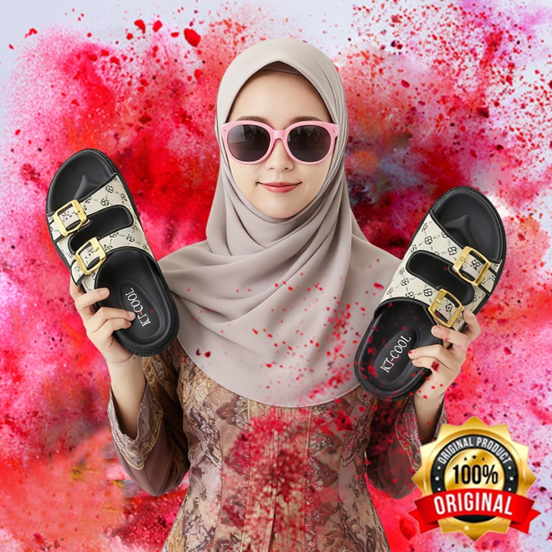 YUTU (ORIGINAL) Sepatu Sandal Wanita Bergaya Korea Terbaru Sandal Slop Wanita Tali Gesper Strap Satu Sendal Selop Cewek Model Tipe Anti Selip (2426#)