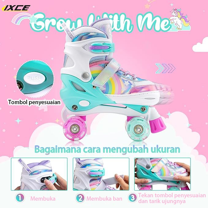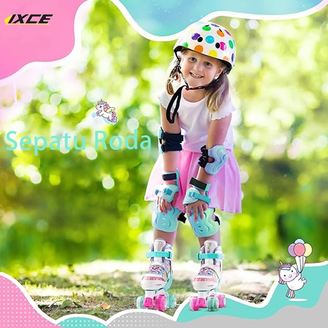IXCE Roller Skate Anak Pemula - Sepatu Roda 4 Roda Anti Jatuh, Aman untuk Usia 3-8 Tahun hadiah lebaran anak