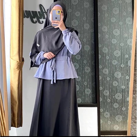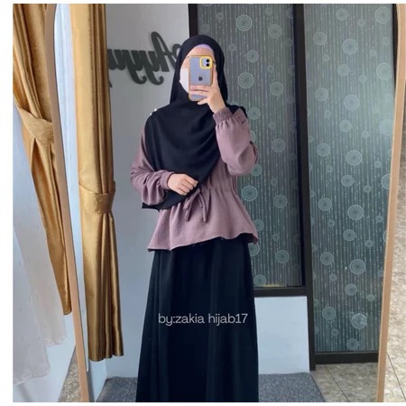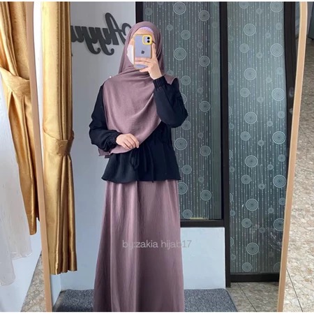 Baju gamis - gamis wanita - set gamis - Set Baju Gamis Remaja Dewasa Busui Zahra Cringkel Premium BusuinMuslim Simple