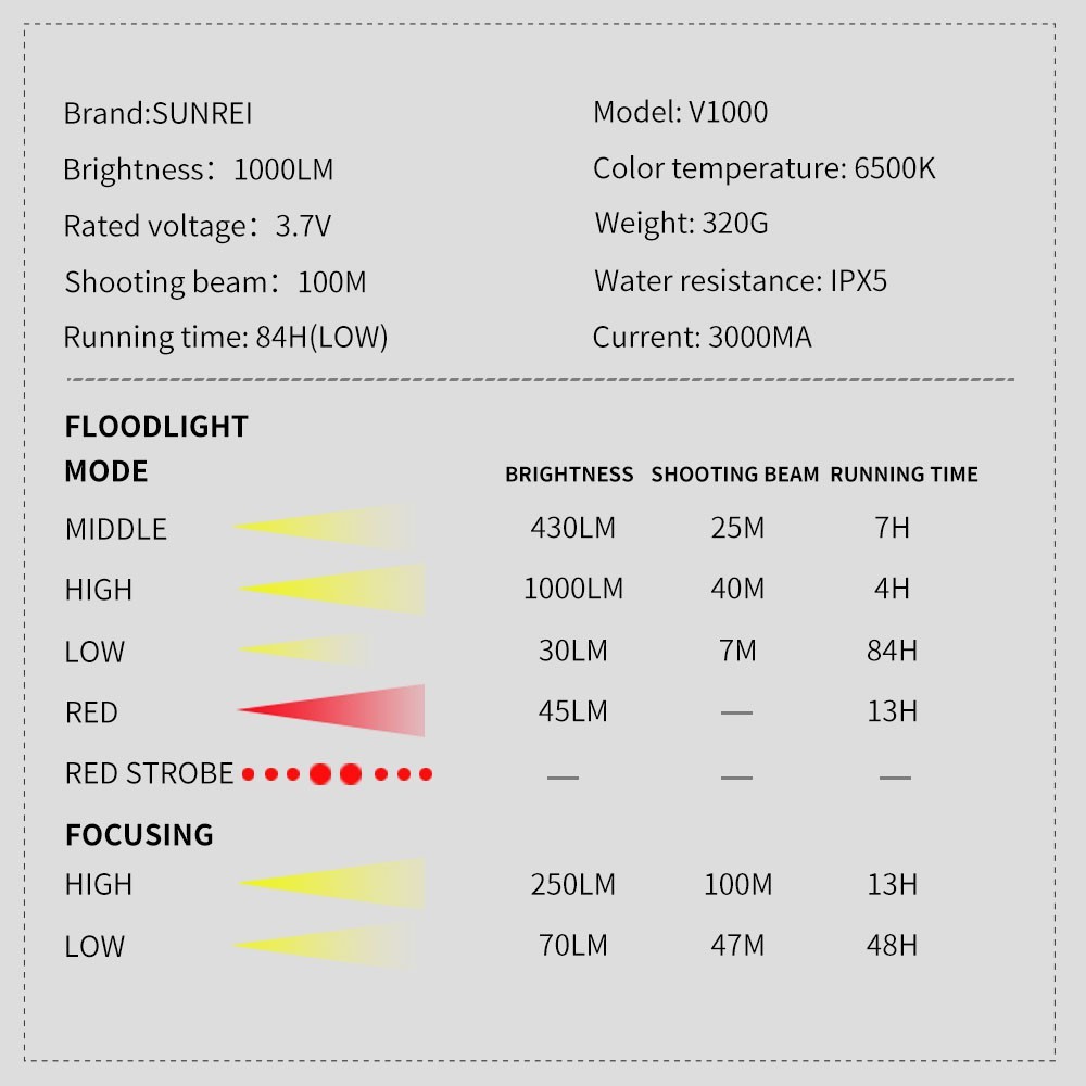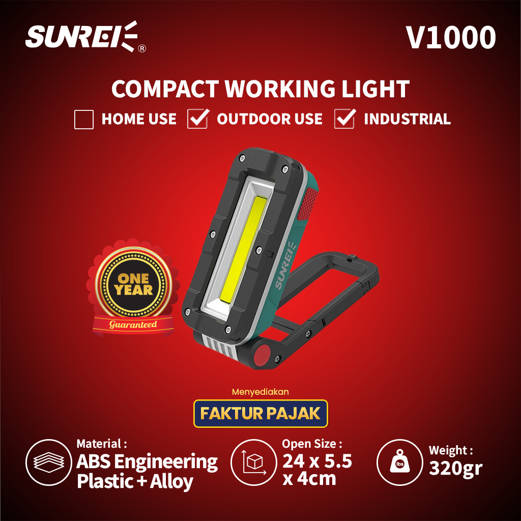 Senter Emergency Lampu COB Sunrei V1000 1000 Lumens IPX5 Lamp Kerja Proyek