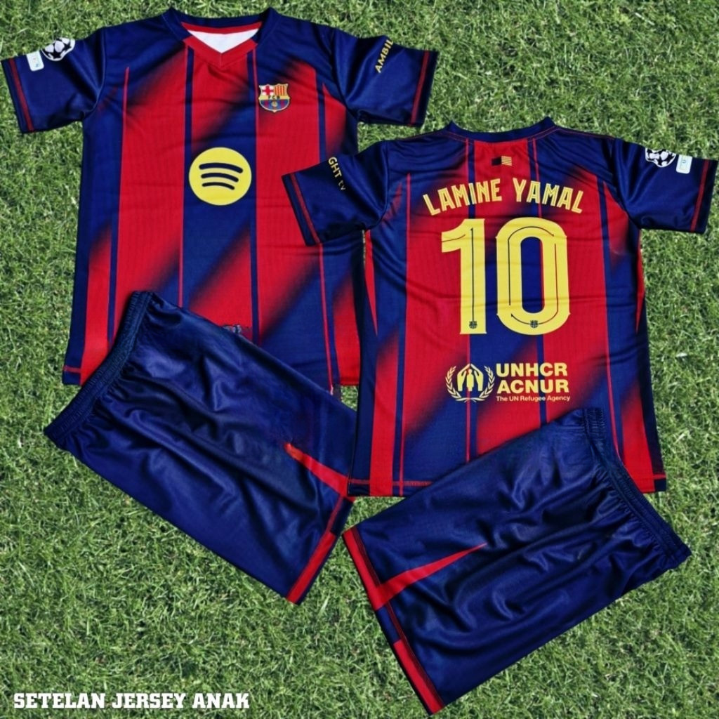 Jersey kids BARCA 2025-26 / setelan bola anak terbaru / jersey sepak bola bahan tebal lembut / pakaian olahraga outdoor
