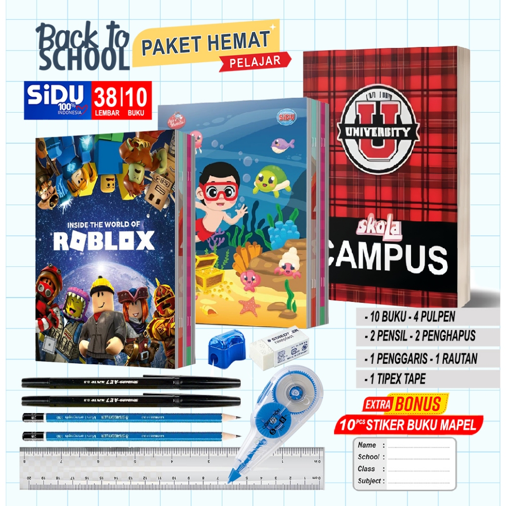 Buku Tulis Satu Paket Perlengkapan Sekolah, Paket Buku Campus 38L Murah Lengkap ATK untuk SD SMP SMA