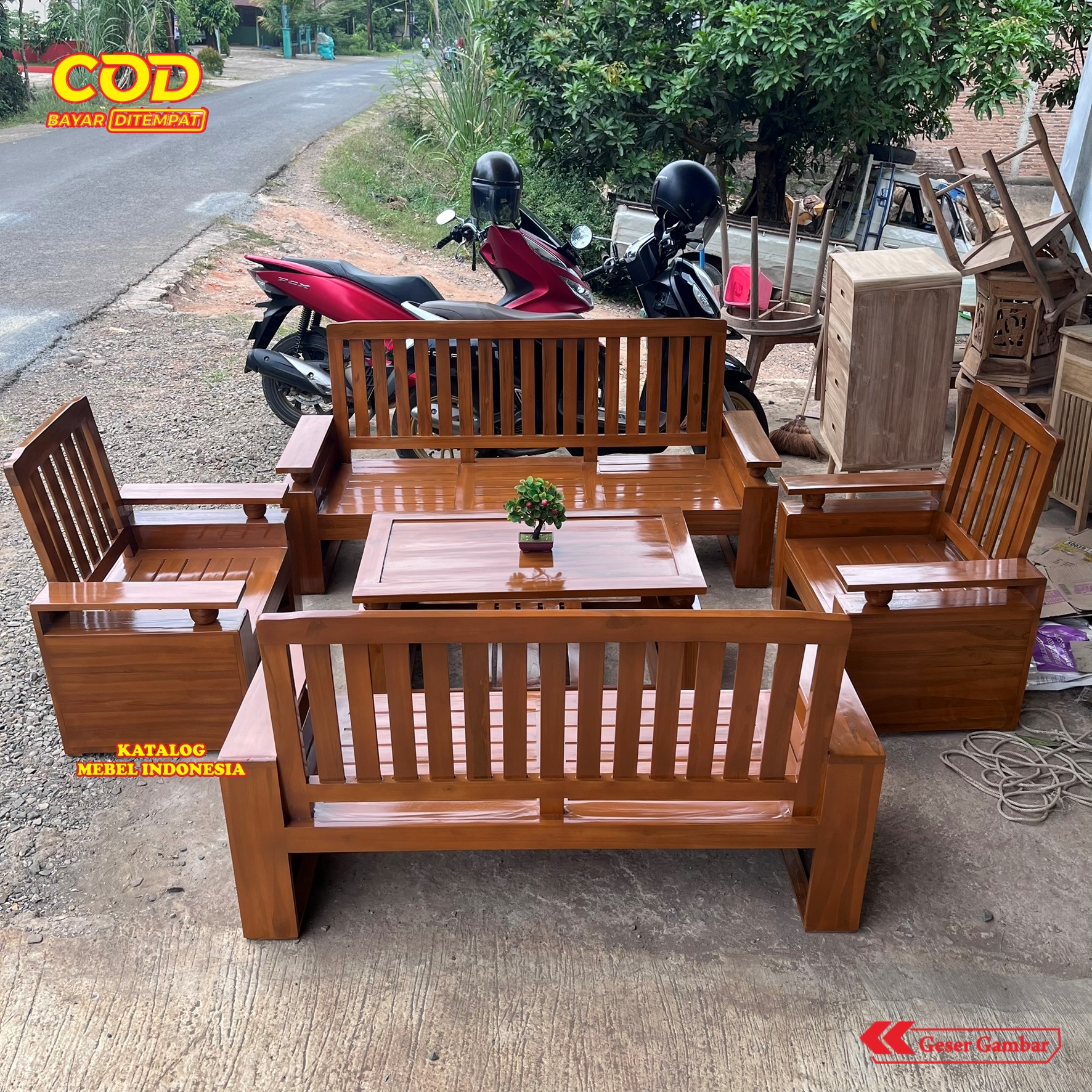 Kursi Tamu Minimalis Kayu Jati Set 3-2-1-1 Kursi + Meja | Bangku Ruang Tamu Klasik Modern Furniture Jepara