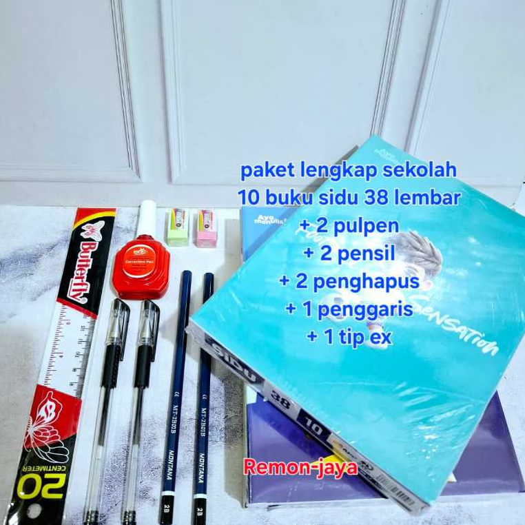 Buku paket lengkap sekolah / 10 buku sidu 38 lembar +2pensil +2pulpen +2penghapus +1penggaris +1tip ex