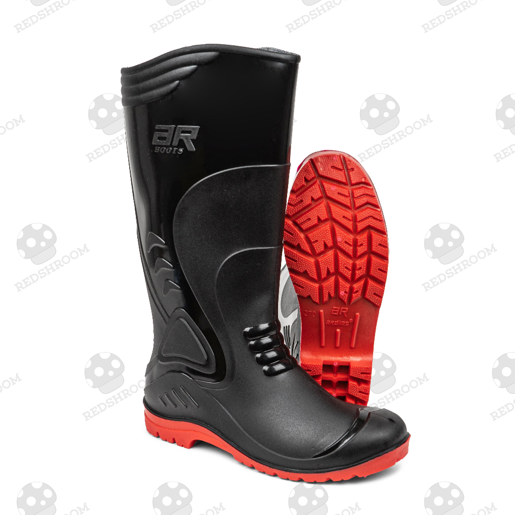 Sepatu Boots Tinggi Ardiles Crane Hitam Merah AR Sepatu Boots Karet Lokal Anti Air & Slip Ringan Nyaman Lentur