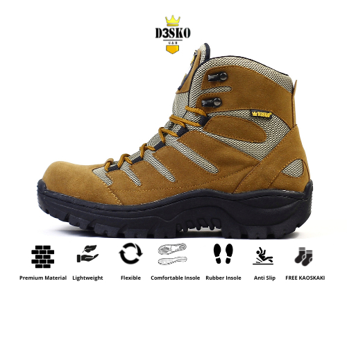 D3SKO G&B - Sepatu Boots Pria D3sko Crane Safety Pria Ujung Besi Warna Tan Black