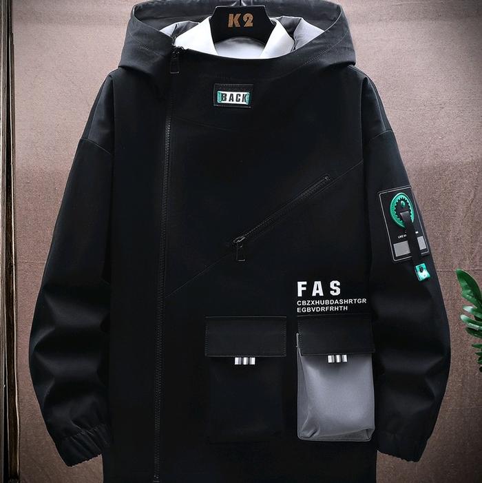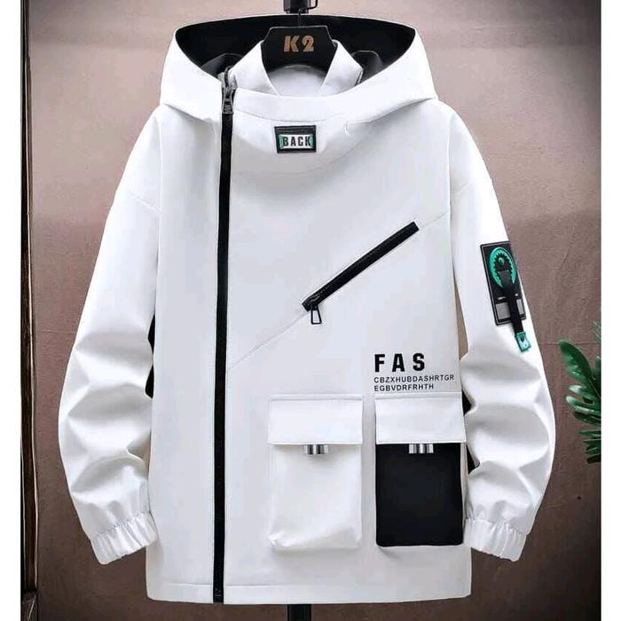 Jaket Pria Korea Anti Air Hoodie K-Pop Hiip Hop Zipper Tebal Nyaman Hitam Distro - Pas Putih, M