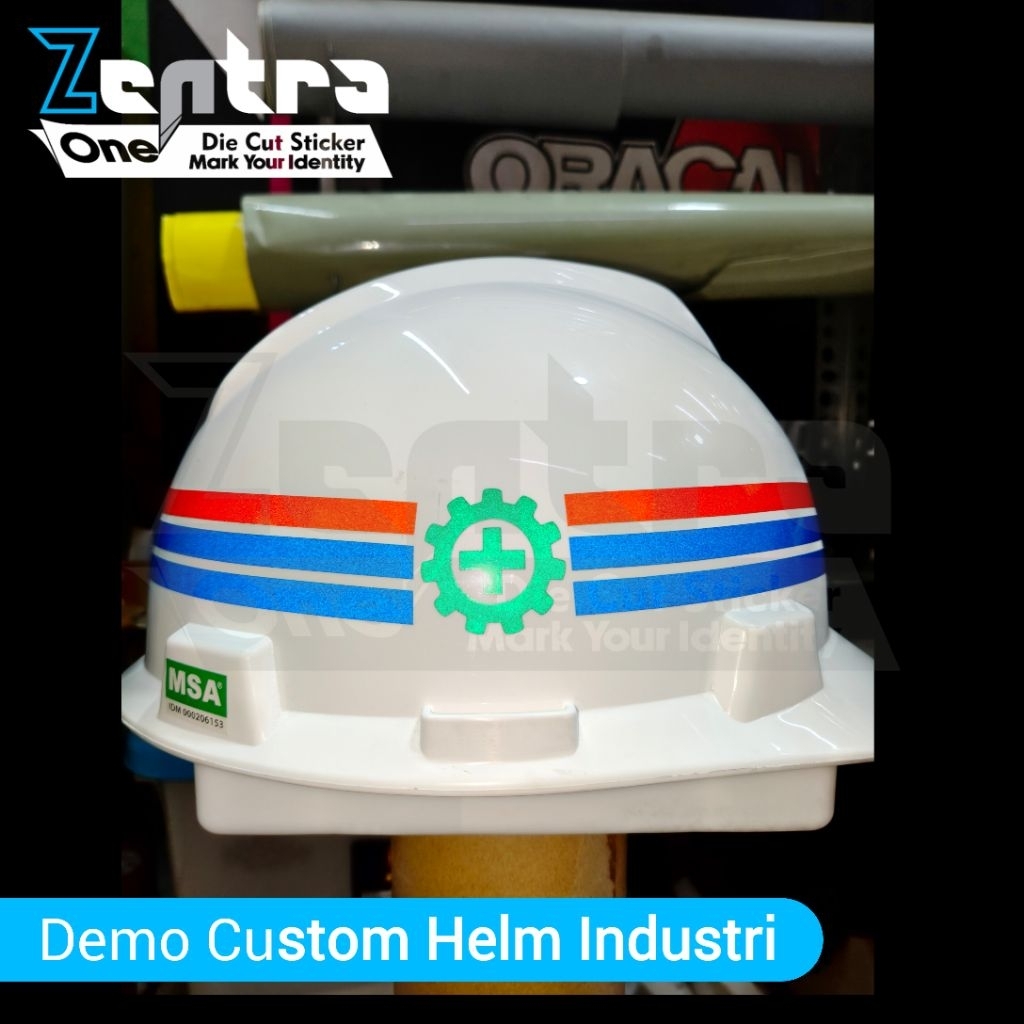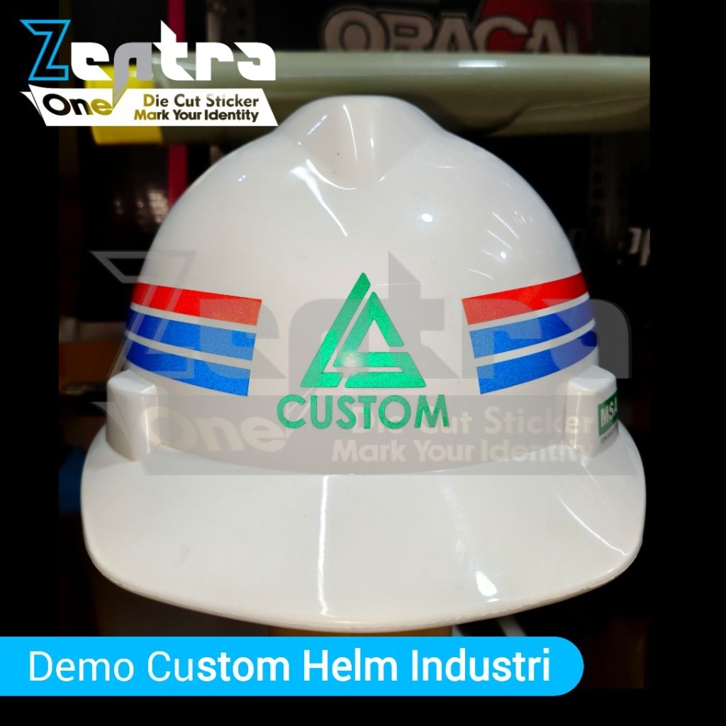 Stiker Helm Industri / Proyek Custom Cutting Reflektif + Logo & Nama Perusahaan. Versi 3 Striping Helm Industri / Proyek