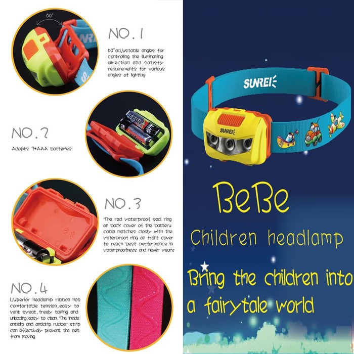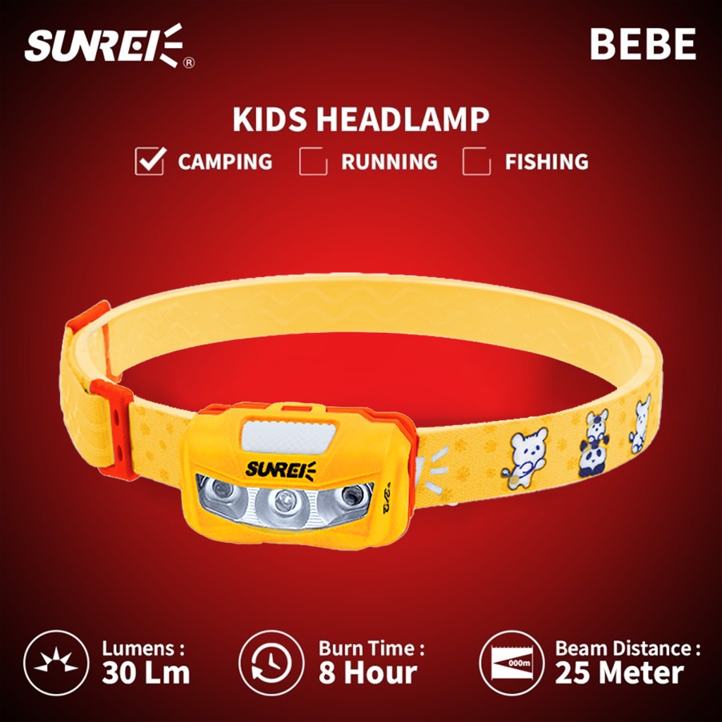 Lampu Kepala Headlamp Anak Kids Sunrei BeBe 30 Lumens IPX6 Kids
