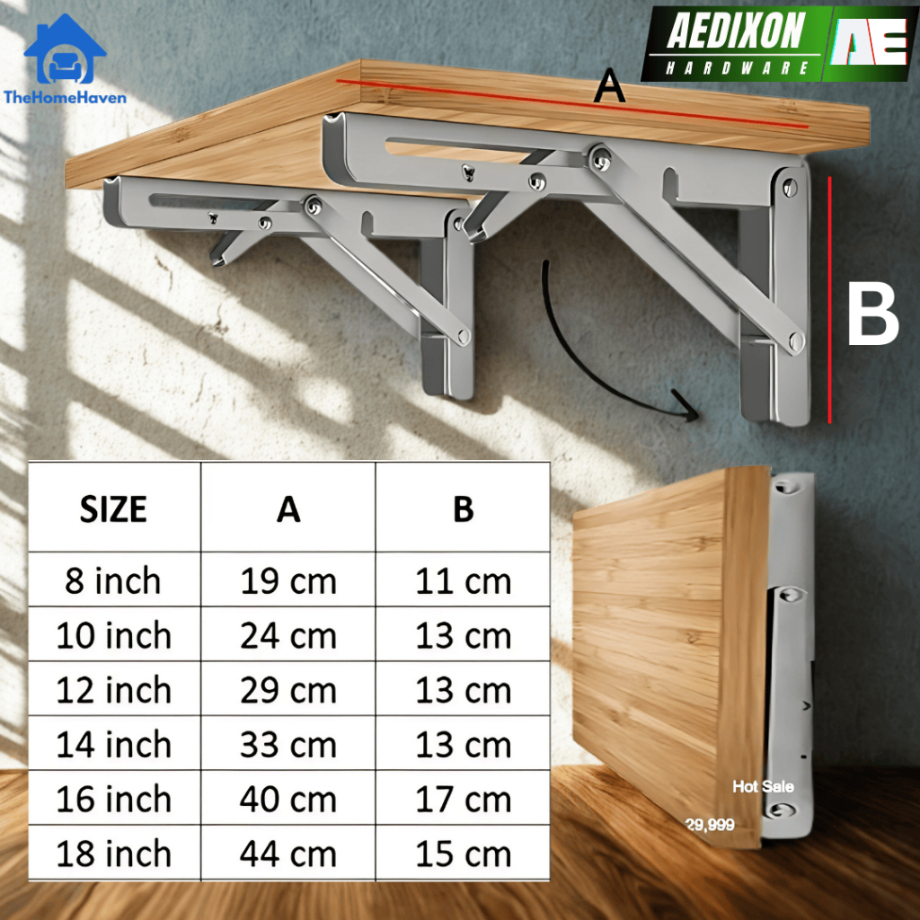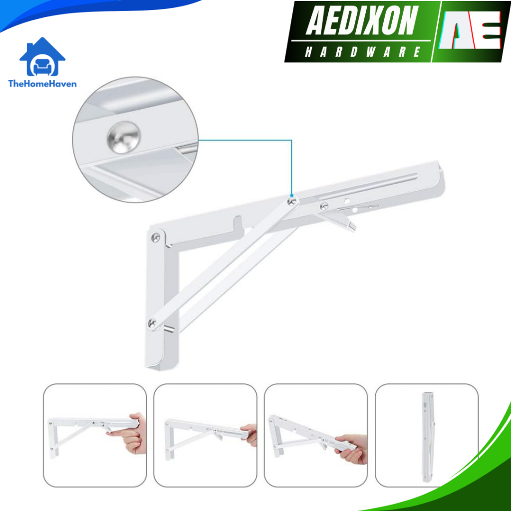 Siku Rak Lipat 16" | Siku Rak Dinding Meja Lipat | Bracket Meja Dinding Lipat | Foldable Bracket | Putih | AEDIXON