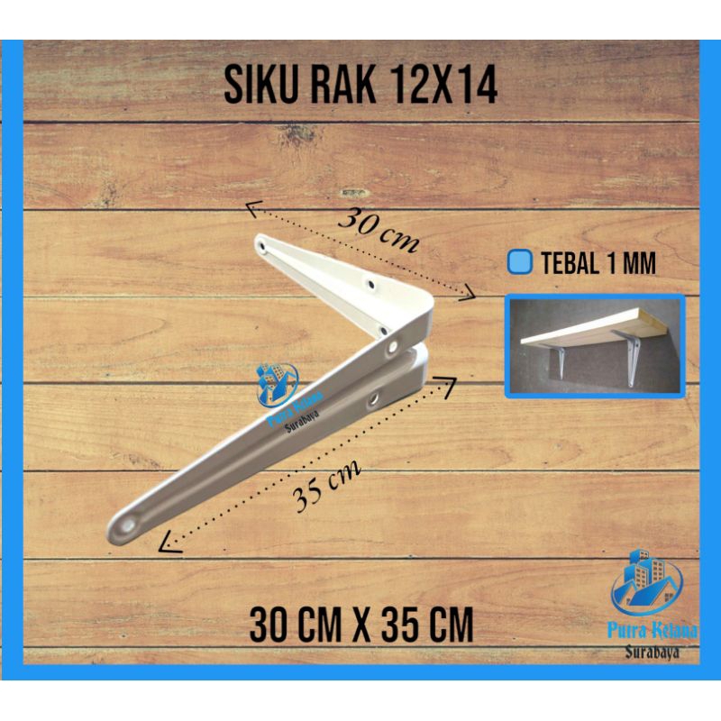 Siku Rak Dinding 12x14 Putih 12 Set/24pc/1Lusin Lusinan /Siku Rak Tembok 12x14 Inch Lusinan