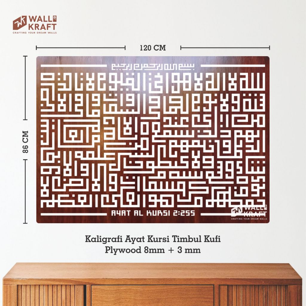 PROMO!!!Hiasan Dinding/Kaligrafi Kayu Timbul Ayat Kursi Kufi 3D