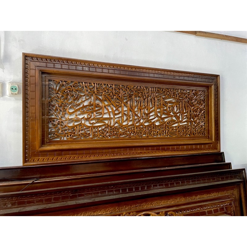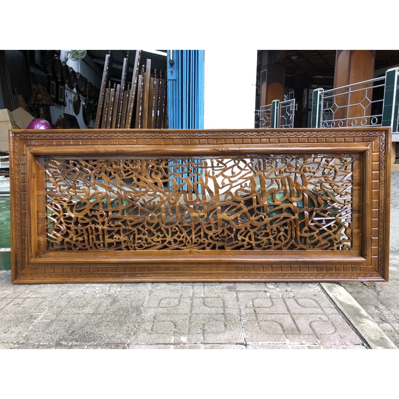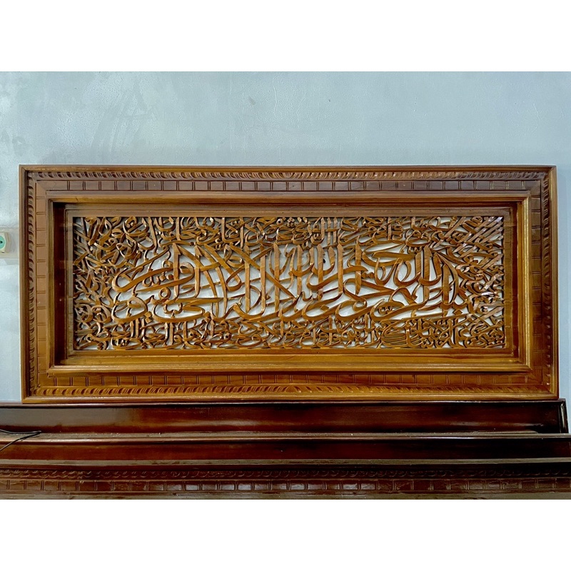 Kaligrafi ayat kursi jati krawangan ukir jepara 140x60