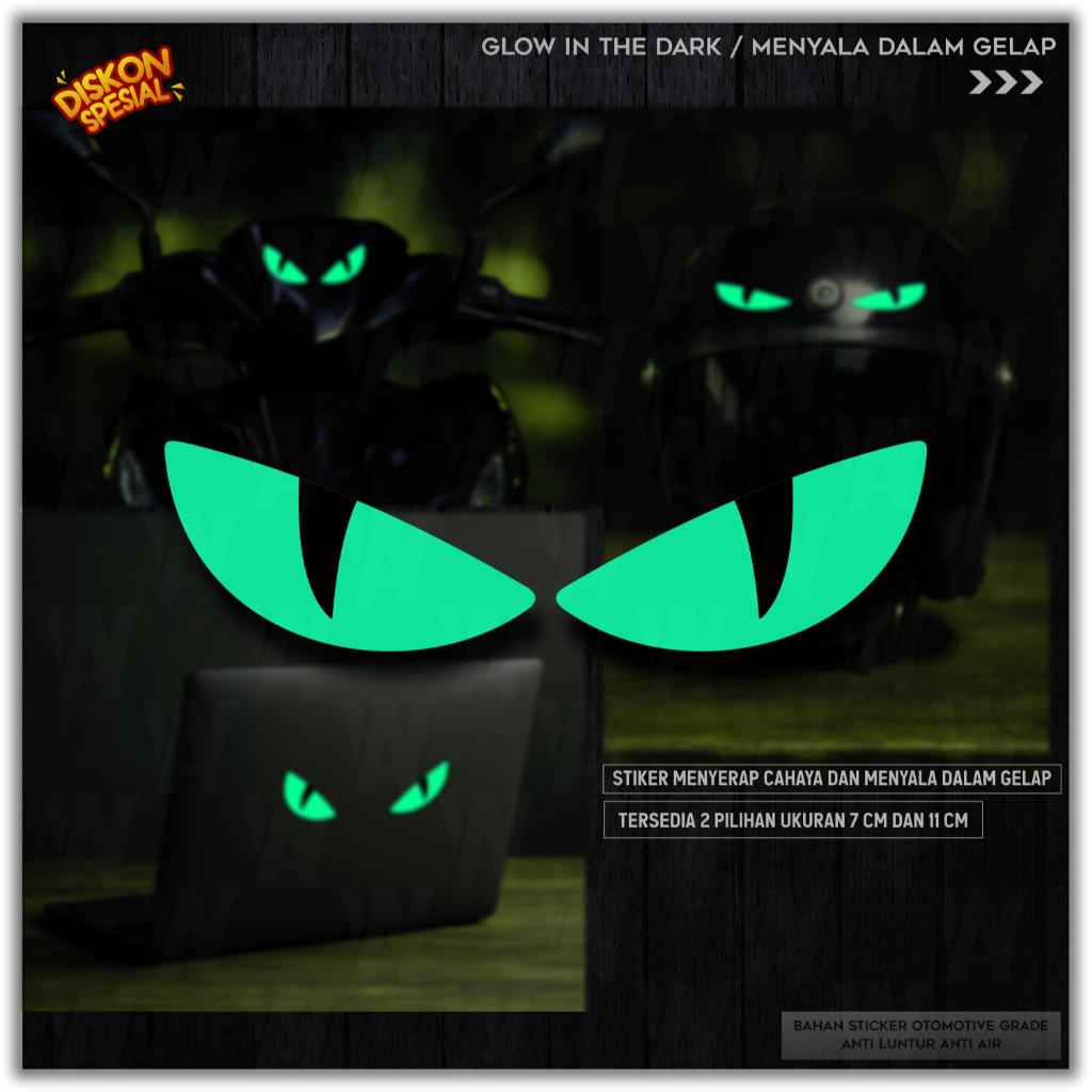 STIKER MATA KUCING 3D GLOW IN THE DARK UNTUK MOTOR,MOBIL,LAPTOP -AKSESORI DEKORASI MOTOR-MOBIL-HELM