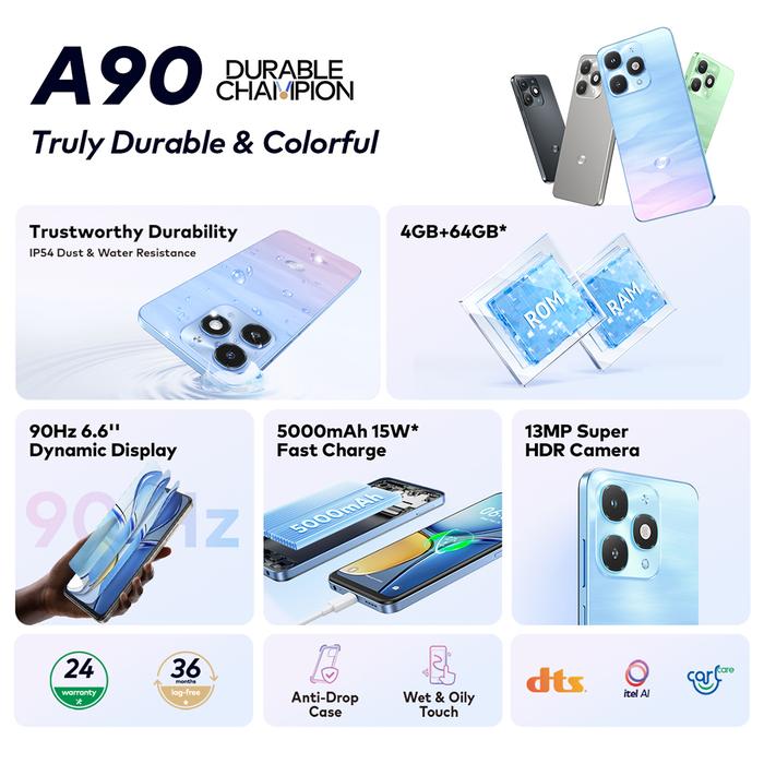 itel A90 4/64GB – Trustworthy Durability IP54 – 6.6'' 90Hz- Mi Gadget
