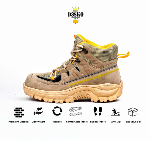 D3SKO G&B - Sepatu Boots Pria D3sko Pedro Safety Pria Ujung Besi Warna Cream Yellow