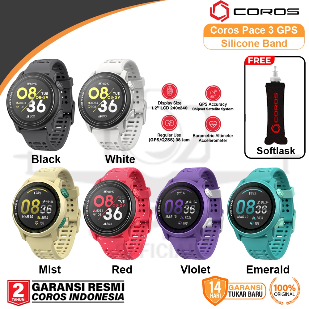 Coros Pace 3 Premium GPS Sport Smart Watch Silicone Band - Garansi Resmi 2 Tahun