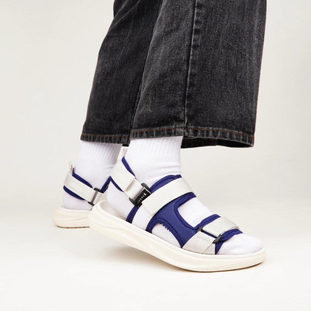Sendal - sandal cowok - Sandal Slip On Traveling Pria Sendal Slop Wanita Gunung Meera Silver Blue SAOKI
