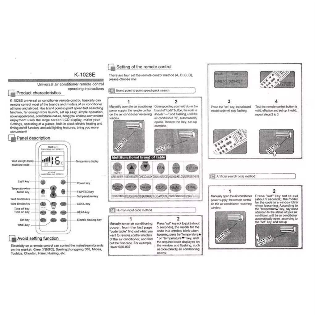 Remot AC Universal Remote Controller Air Conditioner with Flashlight - K-1028E