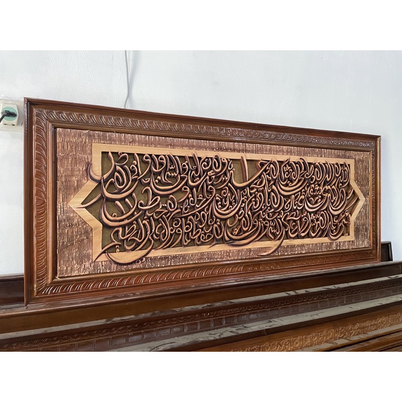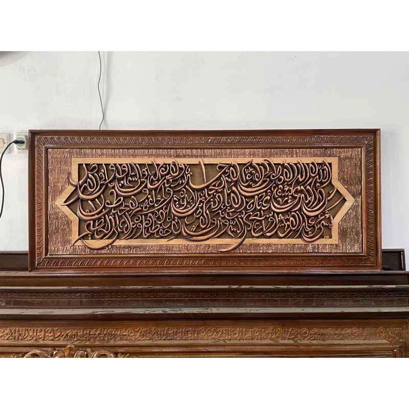 Kaligrafi ayat kursi aesthetic hiasan dinding ukir 140x60