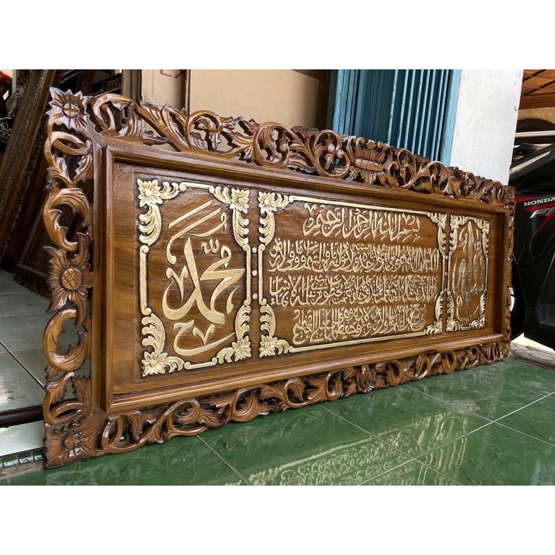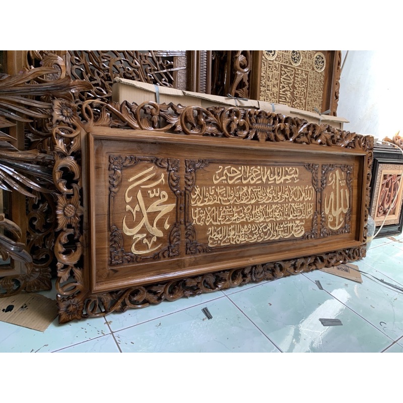 Kaligrafi ayat kursi allah muhammad jati ukir 140x65