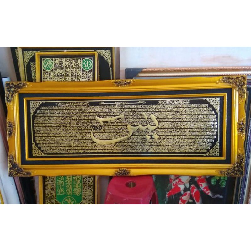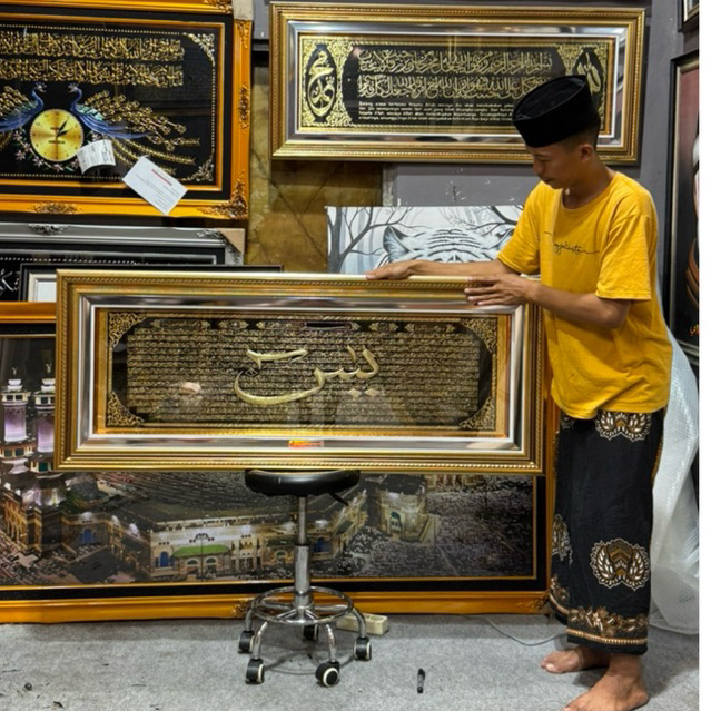 145x60cm Kaligrafi Kuningan Belgea Lafal Yasin Kayu Ukir Kaca
