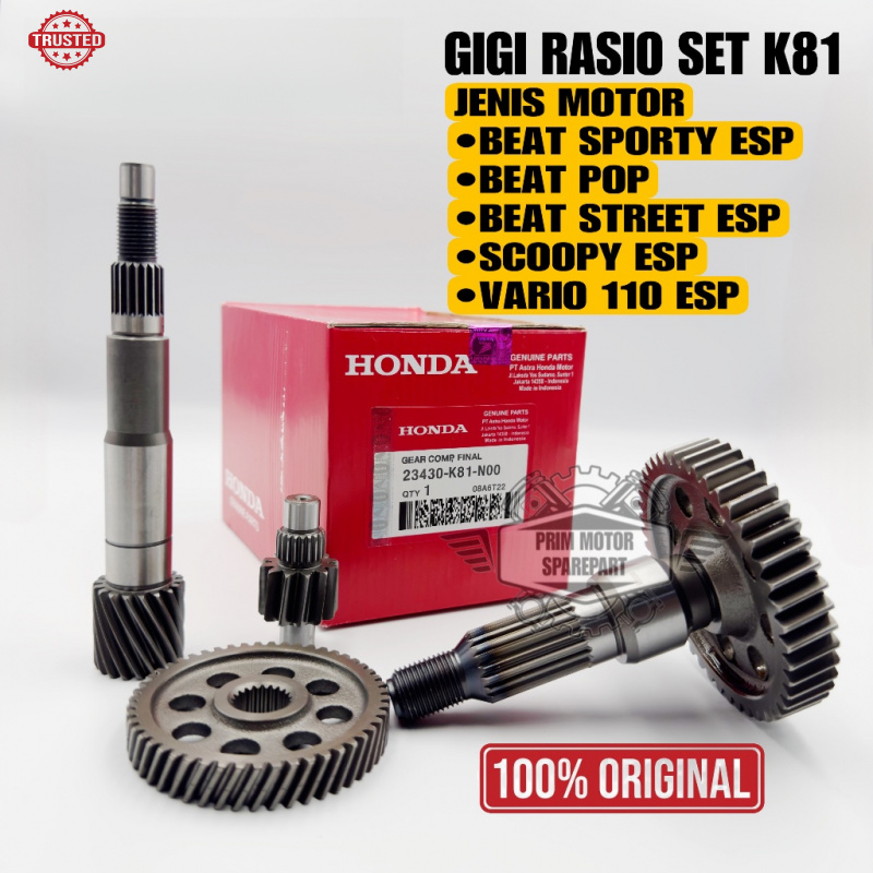 GIGI RASIO SET K81 ORIGINAL 100% HONDA BEAT ESP,BEAT SPORTY ESP,BEAT STREET ESP,SCOOPY ESP, VARIO 110 ESP KUALITAS HONDA