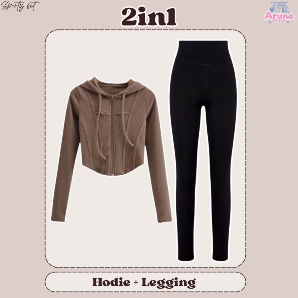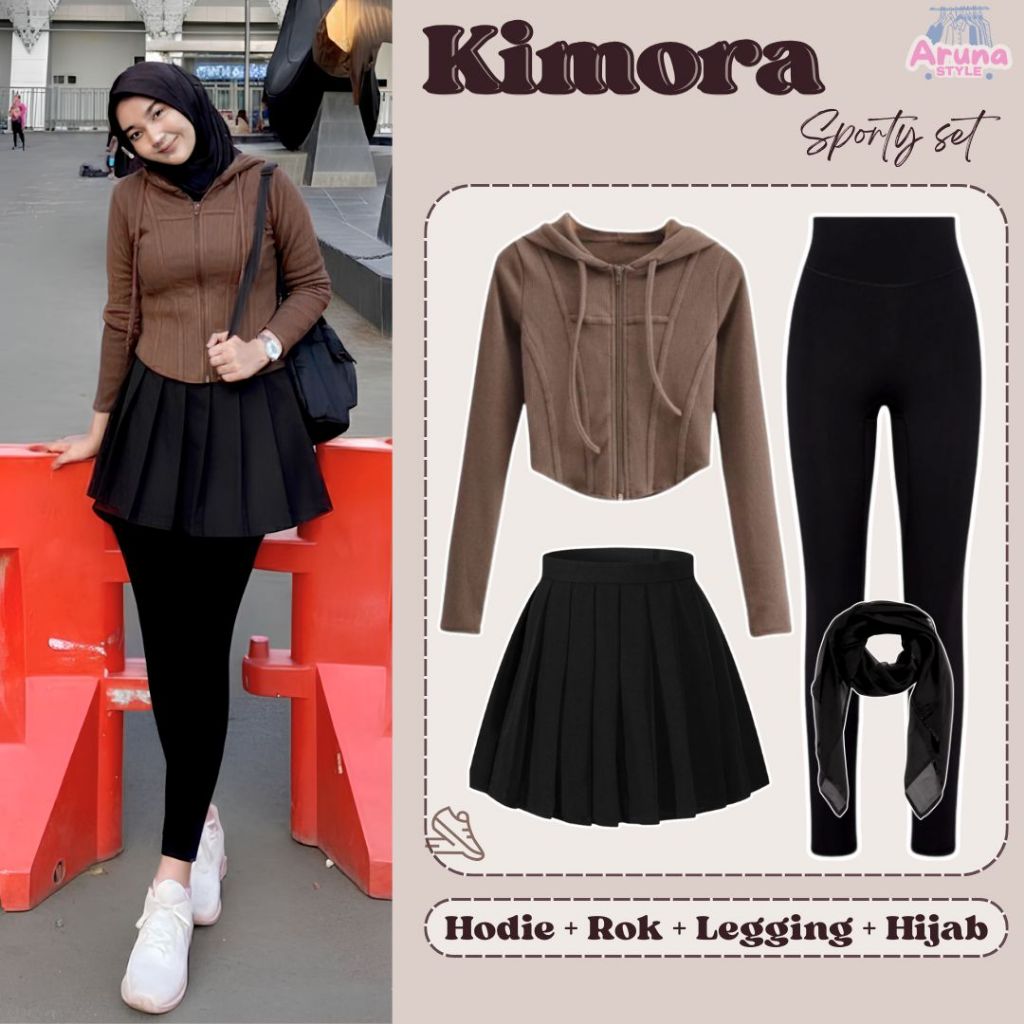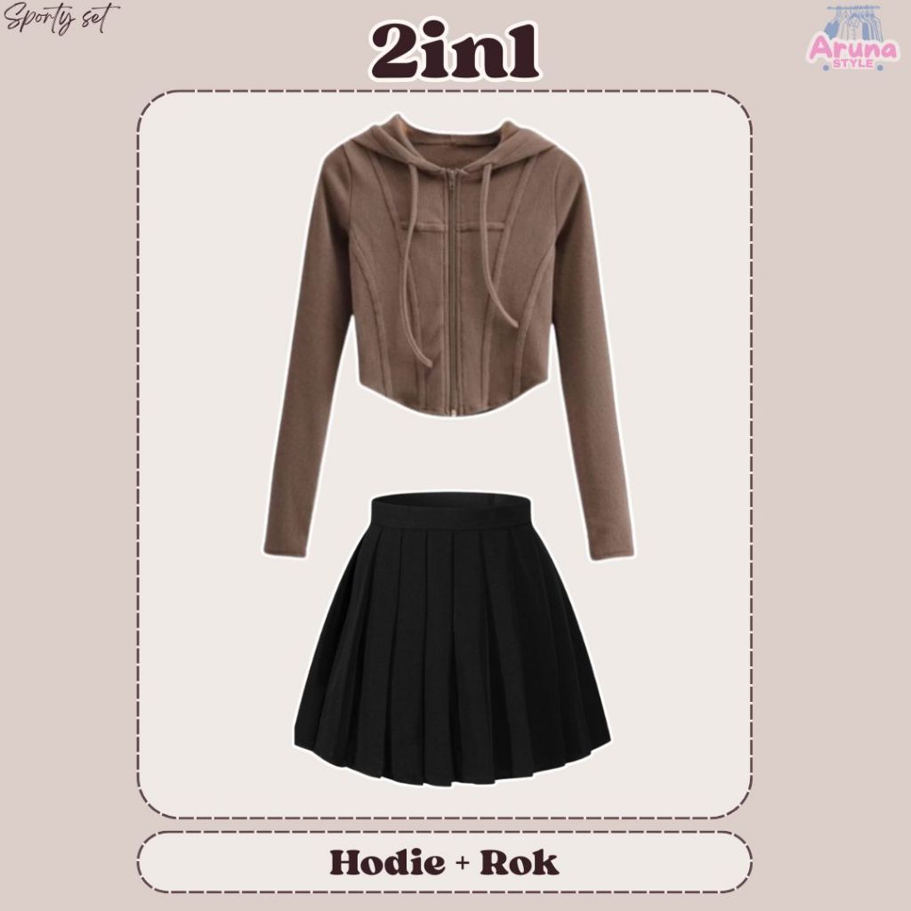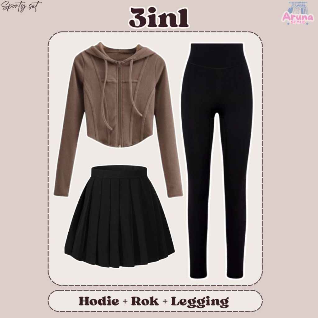 One Set Olahraga Remaja Kekinian Hodie Crop, Celana Legging, Rok Rempel Mini, Bella Square Setelan Sporty Lari/Padel/Ten