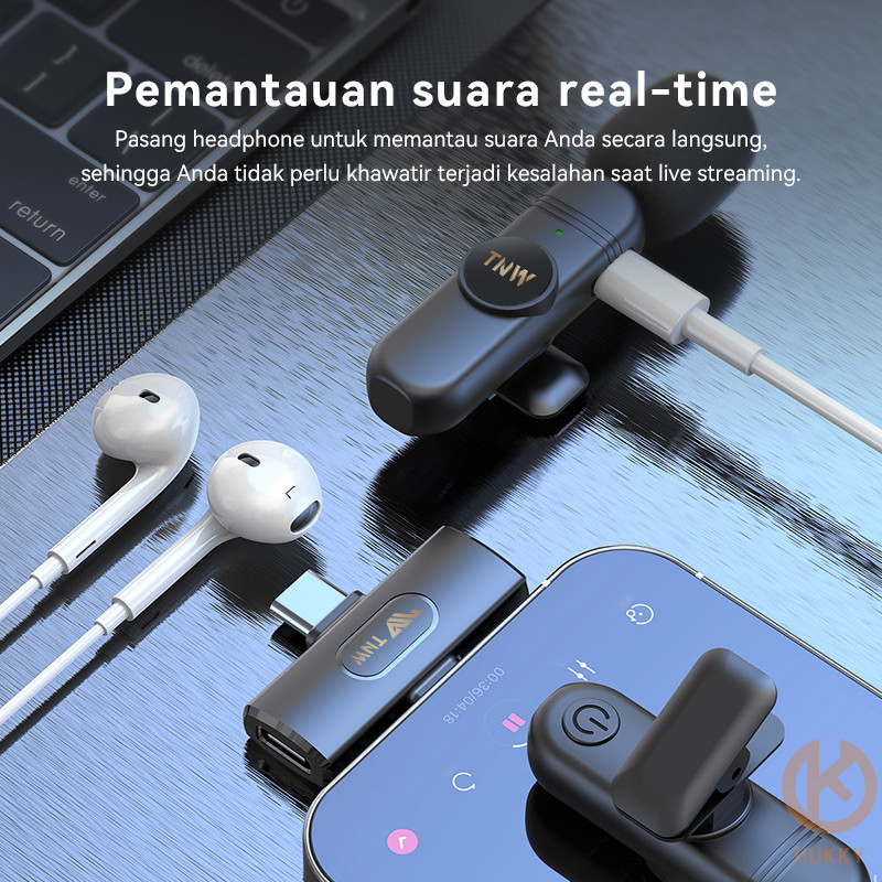 TNW W16 /W17 Wireless Microphone 2 In 1 Clip On Mic Portable Microphone Mikrofon Lavalier HP Untuk Live Streaming TikTok