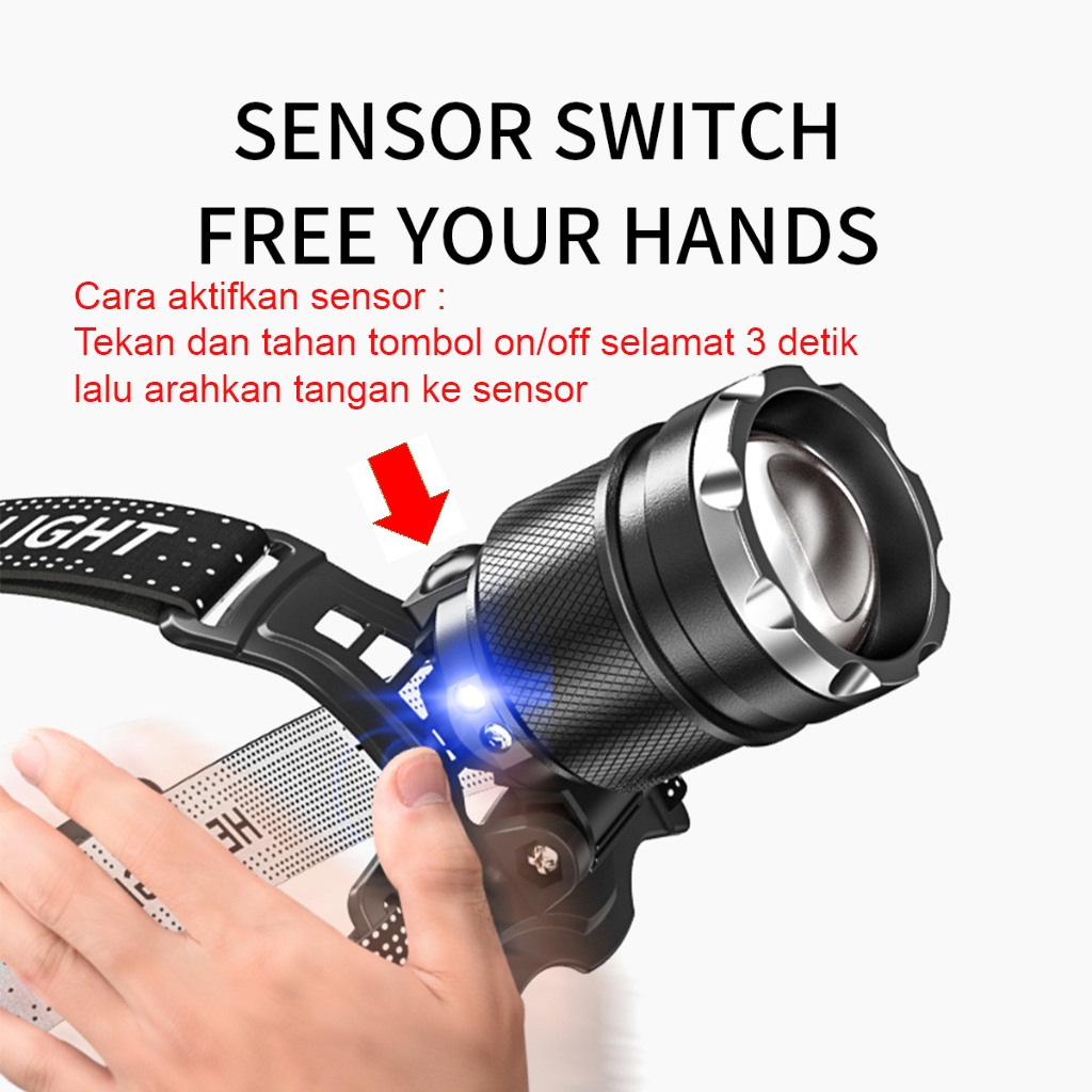 Senter Smiling Shark TD8021C SmilingShark TD 8021C senter kepala Headlight Headlamp M80 White/Yellow Sensor Zoom Type-C