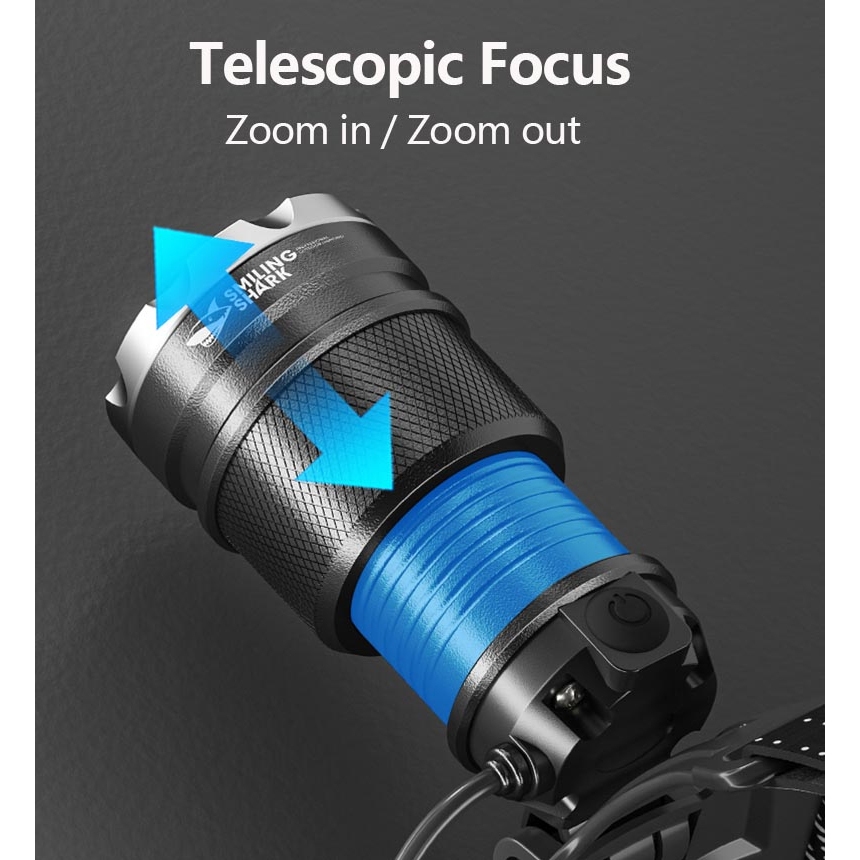 Senter Smiling Shark TD8021C SmilingShark TD 8021C senter kepala Headlight Headlamp M80 White/Yellow Sensor Zoom Type-C