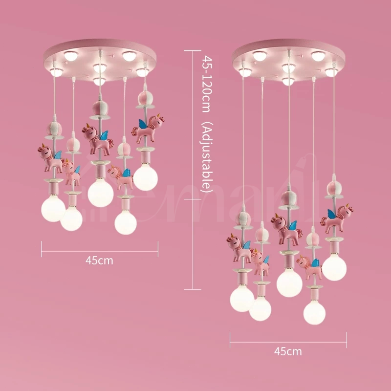 Lampu Gantung Kamar Tidur Unicorn Hanging Lampu Hias Gantung Anak 6Head 3warna Putri Kamar Gadis Plafon Kartun Kamar Ti