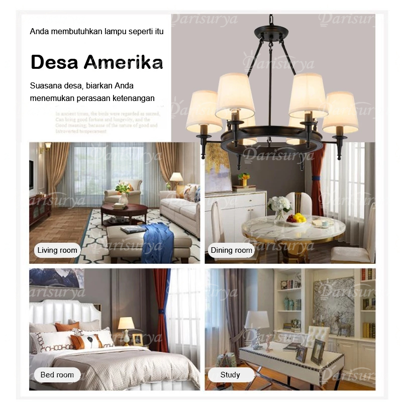 Lampu Gantung Minimalis Lampu Gantung R Tamu Lampu Gantung Retro Klasik Amerik Desain 6 kepala (termasuk E14 bulb) Lampu