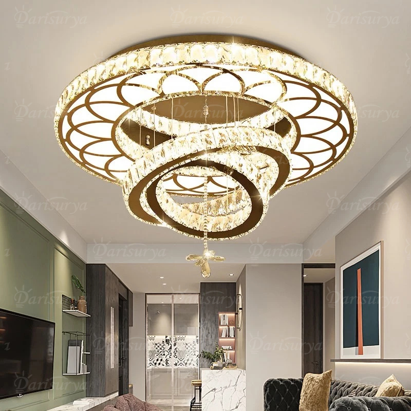 ✌Kemewahan Cahaya✌Lampu Gantung Kristals Besar R Tamu Mewah dekorasi REMOTE KONTROL 3 Warna LED lampu Hias Plafon Krista
