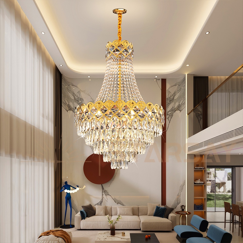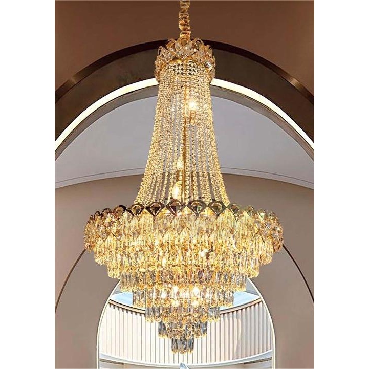 Lampu Gantung K9 Kristals 40/60/80cm mewah Double-Layer 3 Warna ChandModelier hias R Tamu E14 Lampu Hias Gantung R Tamu