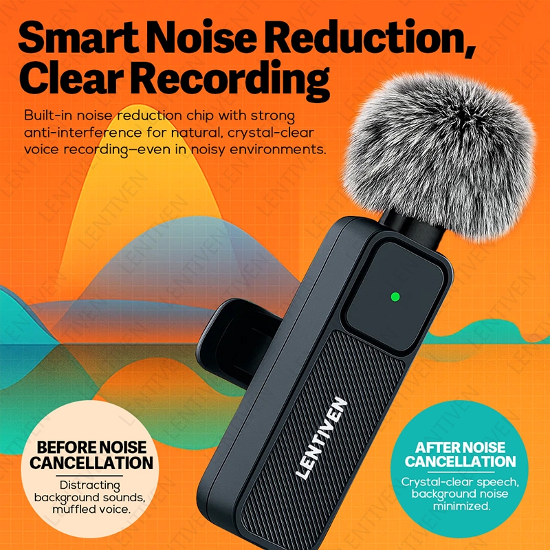 LENTIVEN Wireless Microphone Mic Wireless Clip On Microphone Mikrofon Lavalier HP Plug & Play SE82