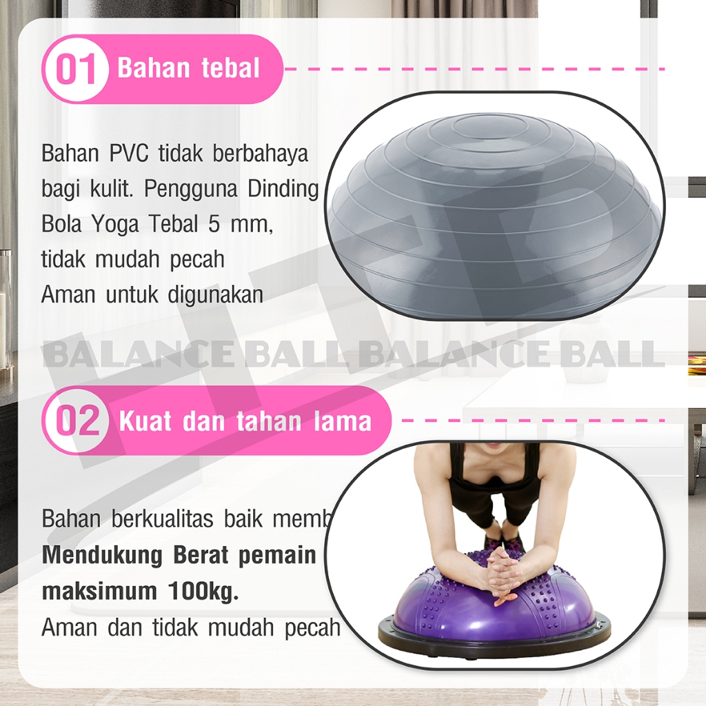 Better Sport Balance Bosu Ball Bola Yoga Pilates PVC Anti Slip Training Gym Ukuran 46cm 58cm