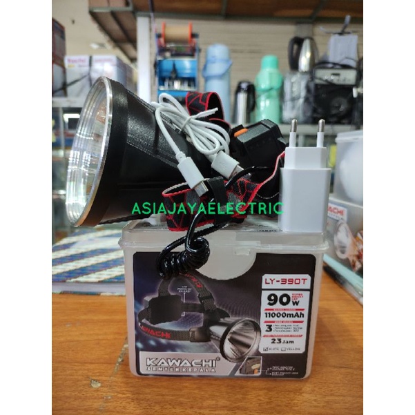 Headlamp Senter Kepala Kawachi LY 390T 90W 90 Watt Super Bright Led 11000Mah Power