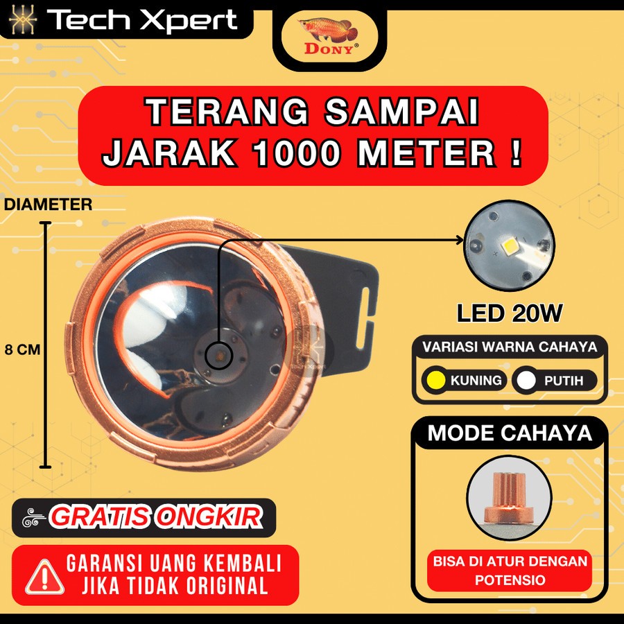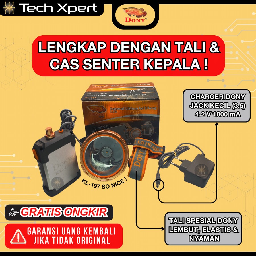 SENTER KEPALA LED DONY 20 WATT KL-197 "SO NICE" ORI OUTDOOR SUPER TERANG ANTI AIR UKURAN BESAR
