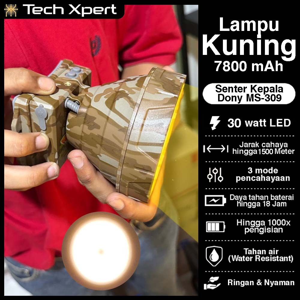 Senter Kepala Led Dony 45 Watt MS-309 "So Big" Ori Super Terang Anti Air Free Tripod Outdoor Jumbo