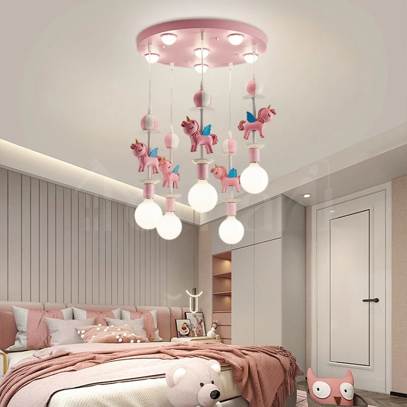 Lampu Gantung Kamar Tidur Unicorn Hanging Lampu Hias Gantung Anak 6Head 3warna Putri Kamar Gadis Plafon Kartun Kamar Ti