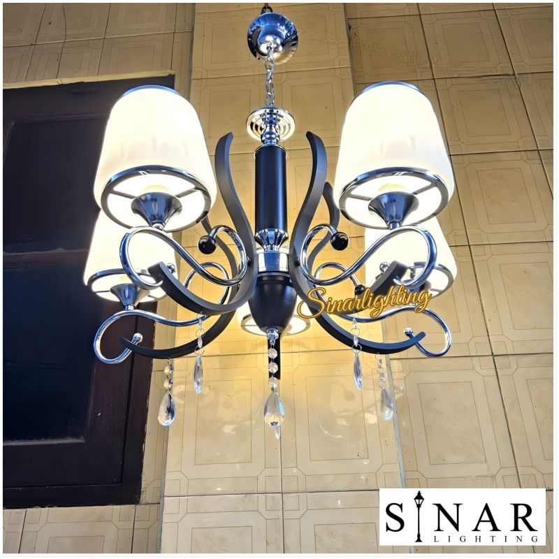 Lampu gantung Cabang minimalis kap kaca 5 Lampu X7583