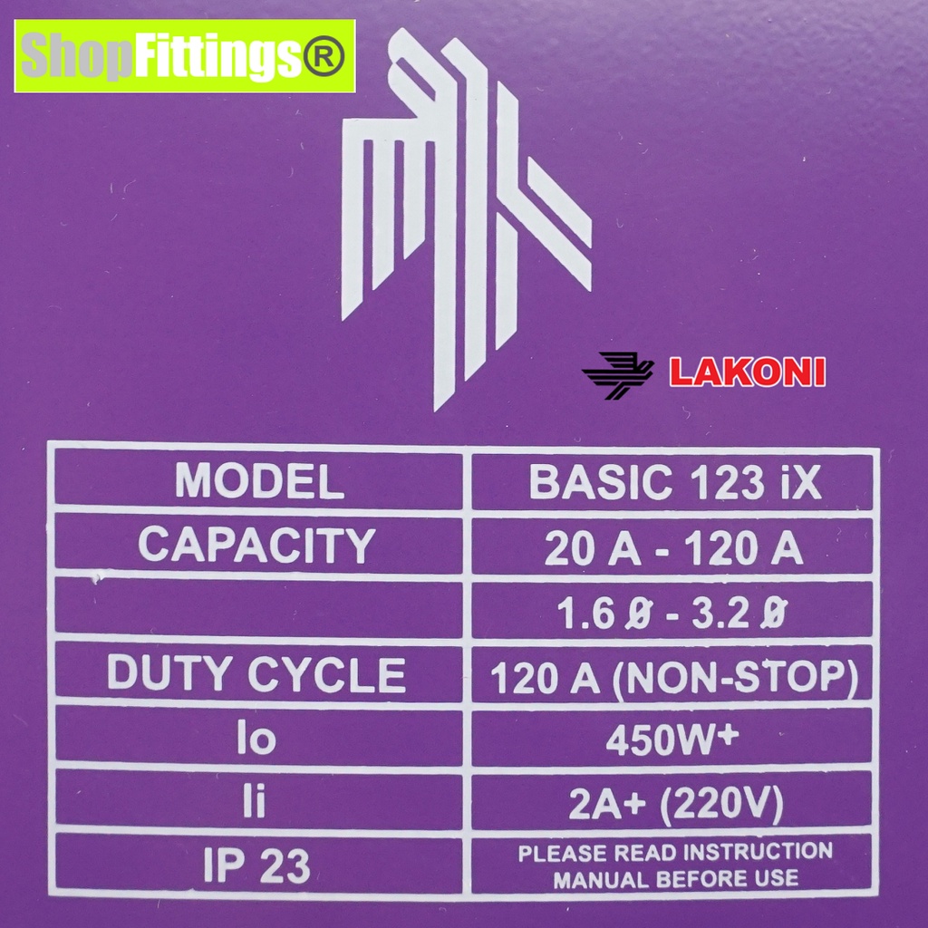 LAKONI Basic 123 ix Mesin Trafo Travo Las Listrik Portable Welding 450 watt 120 Amp