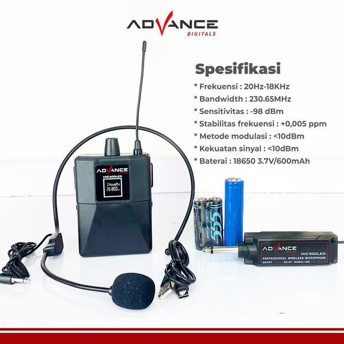 ADVANCE Mic-500 LED Mic Bando Wireless Mic Clip On / Microphone Eksternal
