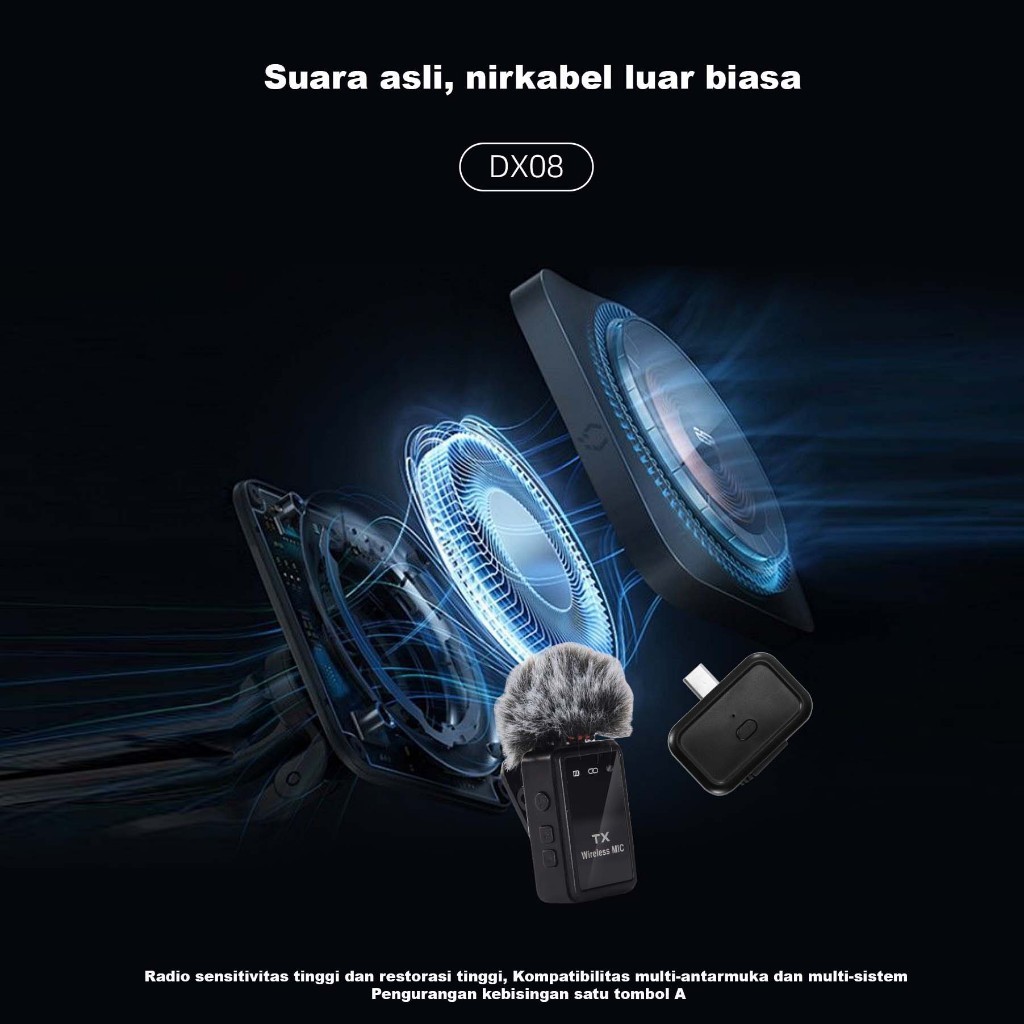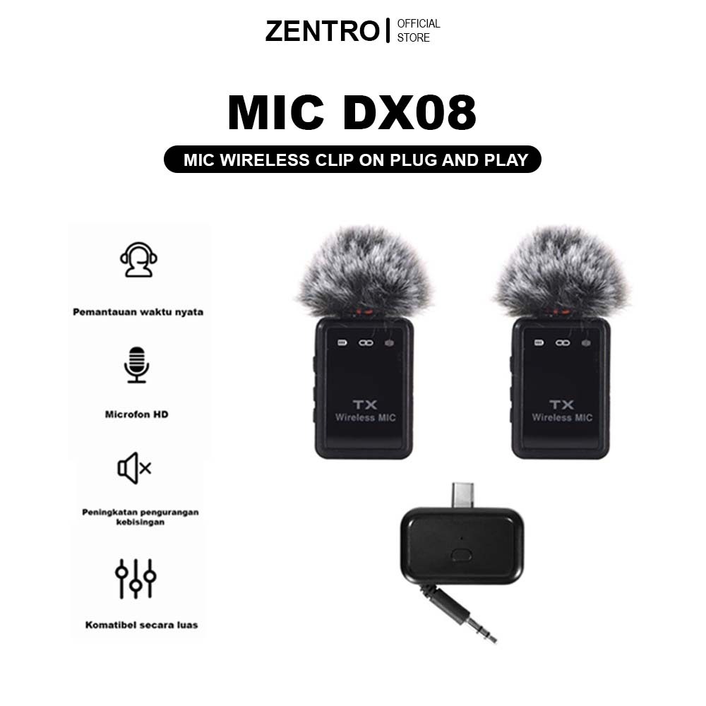 ZENTRO Mic Wireless Clip on Dual Mic DX08 Microphone Mikrofon HP Plug & Play Mikrofon Wireless HP Android Type C Dan Kam