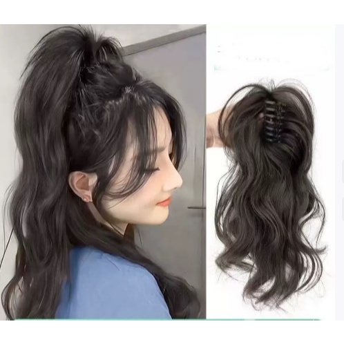 Jepitan Rambut Asli Lembut Panjang 35cm Fake Ponytail Wig WAVY