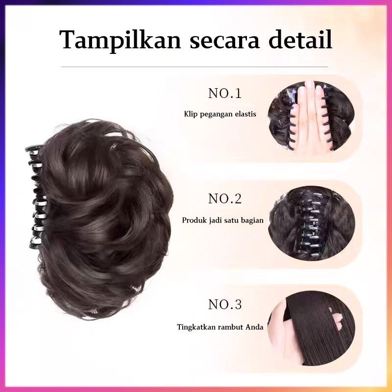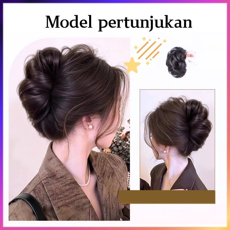 HIL-6614 Wig kepala kuncup bunga wig Sanggul Jepit Rambut Palsu Ponytail Model Ekor Kuda Konde Rambut Palsu Cepol Jedai
