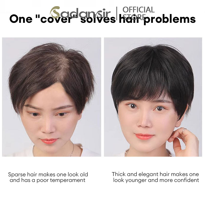 Sadansir Wig Toupee Rambut Palsu Wanita Menutupi Rambut Putih Rambut Langka Wig Rambut Hairclip Poni