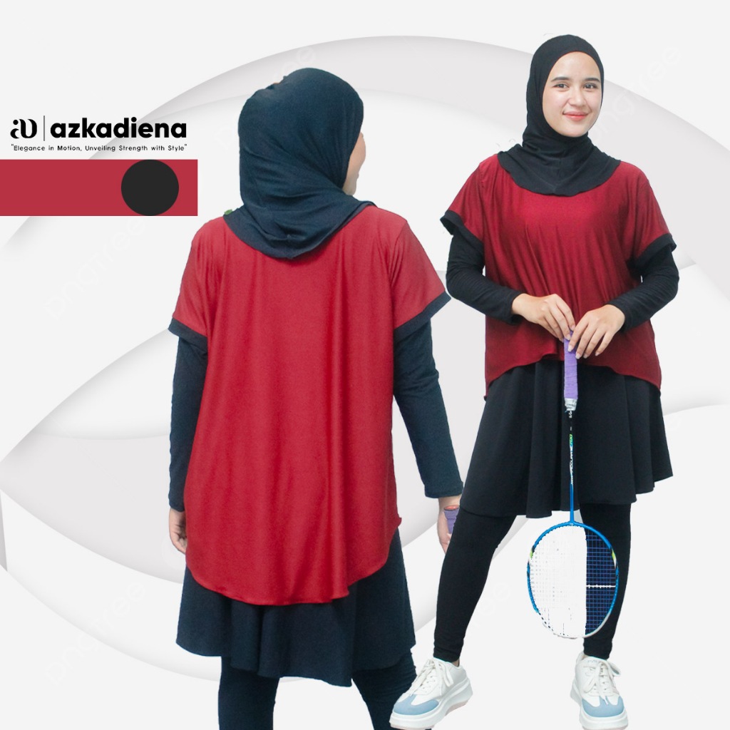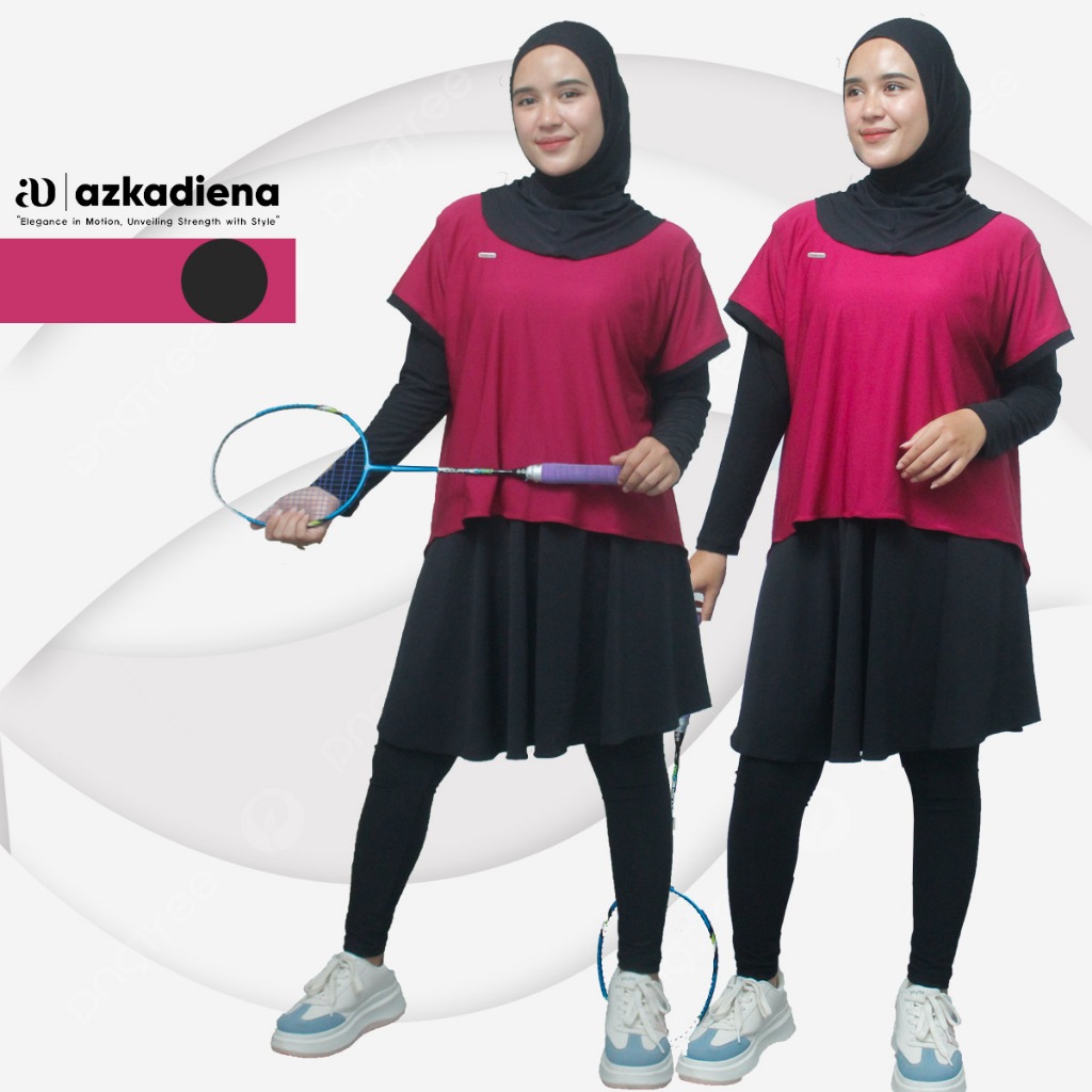 Azkadiena Setelan Olahraga Agnia Wanita Crop Legging Rok Set Jilbab Hitam All size Bahan Jersey
